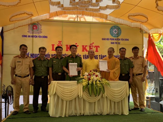 Sáng ngày 08/09/2023 (nhằm ngày 24/7 năm Quý Mão) Công an huyện Yên Dũng ( tỉnh Bắc Giang) phối hợp cùng Ban tri sự GHPGVN huyện Yên Dũng tổ chức lễ ký kết kế hoạch phối hợp tuyên truyền, vận động Tăng Ni Phật tử tham gia bảo đảm trật tự, an toàn giao thông giai đoạn 2023 – 2026 và gia mắt mô hình Tăng Ni Phật tử tham gia giao thông văn hóa an toàn tại tổ Đình Vĩnh Nghiêm.