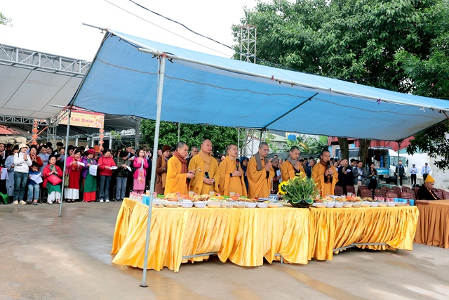 Trước khi phóng sinh, quý Thầy tại Bổn tự đã tổ chức lễ cúng thí thực cho các vong linh chết nước tại bờ sông Như Nguyệt để cầu nguyện cho âm siêu dương thới, những khó khăn, hoạn nạn sẽ nhẹ nhàng qua đi và mong ước những điều bình an sẽ tới.
