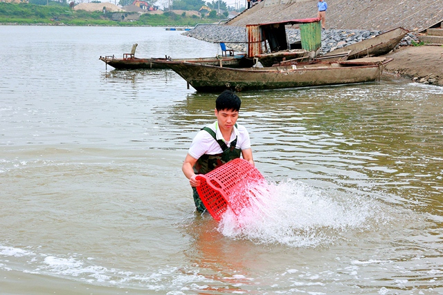 Theo đó, từng bì cá, rỗ cá được mọi người nhẹ nhàng thả xuống sông Như Nguyệt trong tiếng Kinh tụng vang dội một khúc sông.