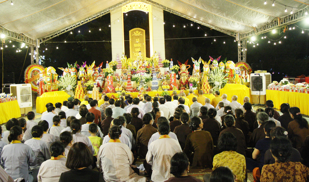 Trong không khí trang nghiêm, thành kính, các vị tăng ni, phật tử dâng hoa, dâng hương, tỏ lòng biết ơn vô hạn đối với sự hy sinh to lớn của các Anh hùng liệt sĩ, đã góp phần tô thắm trang sử vẻ vang của dân tộc, của quê hương Bắc Giang anh hùng.