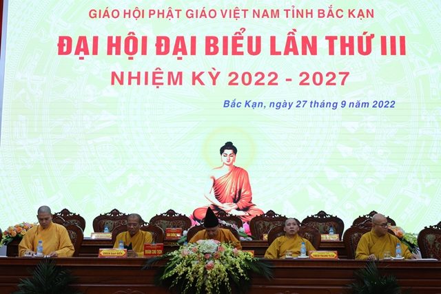 Phát biểu khai mạc, HT.Thích Thanh Quyết – Trưởng BTS GHPGVN tỉnh Bắc Kạn đã nhiệt liệt chào mừng chư Tôn đức giáo phẩm lãnh đạo Trung ương Giáo hội, lãnh đạo Chính quyền các cấp của Tỉnh, cùng toàn thể Đại biểu về tham dự và chúc mừng thành công Đại hội, đây là niềm vinh hạnh, và là sự động viên, cổ vũ to lớn đối với Tăng ni, đồng bào Phật tử của tỉnh nhà.