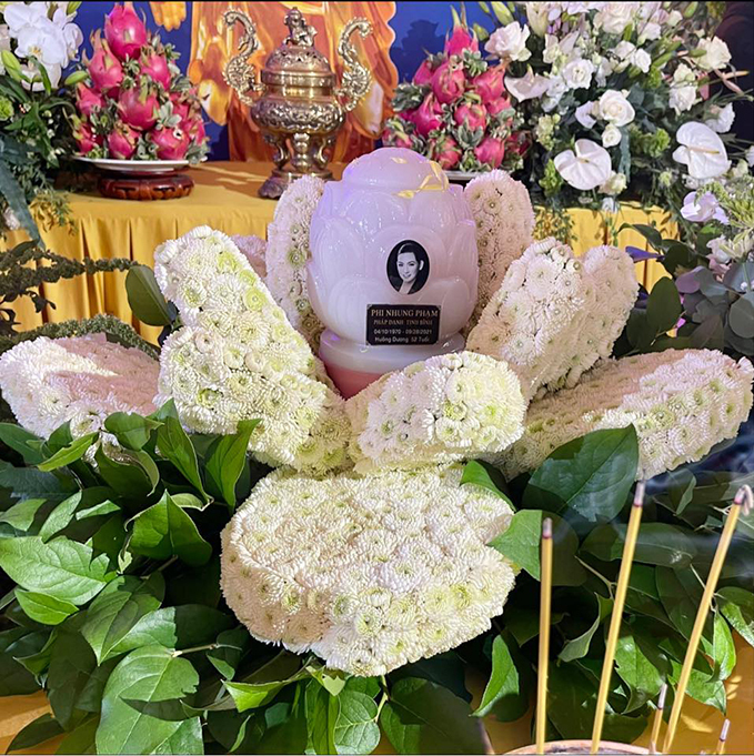 Phi Nhung sinh năm 1970, mất lúc 12h15 trưa 28/9 tại bệnh viện Chợ Rẫy, TP HCM sau một tháng rưỡi điều trị Covid-19, hưởng dương 51 tuổi. Thi hài của nữ nghệ sĩ được hỏa thiêu chiều 8/10 và được vợ chồng Việt Hương mang về Mỹ ngay sau đó.