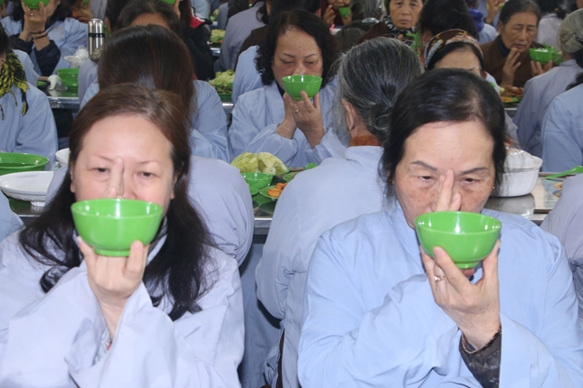 Sau thời pháp thoại, đại chúng dùng cơm trong chánh niệm và đến với các thời khóa tu tập. Ngày tu khép lại trong niềm hoan hỷ của toàn thể mọi người.