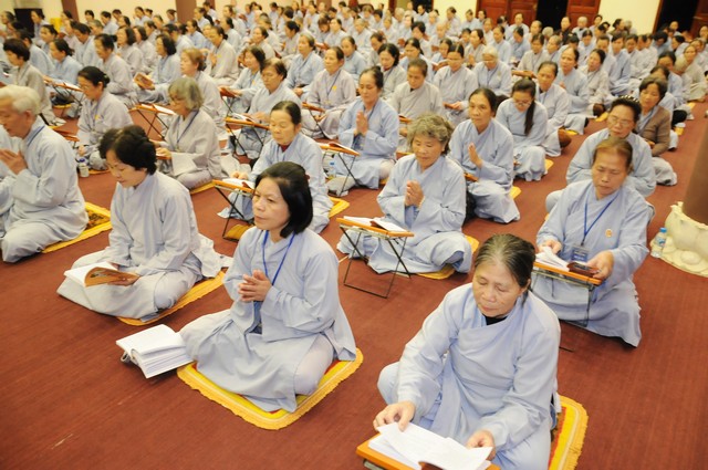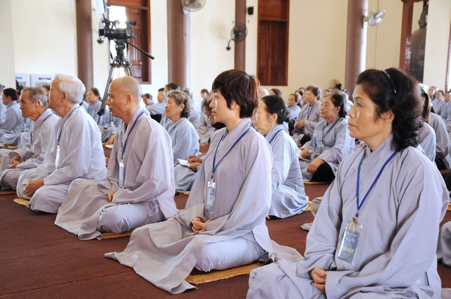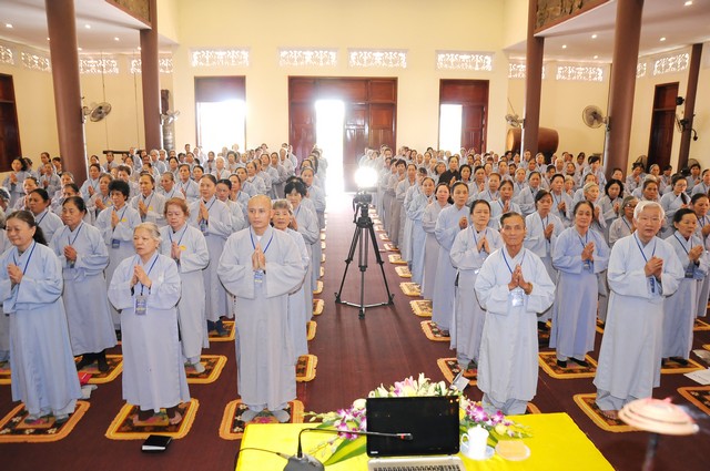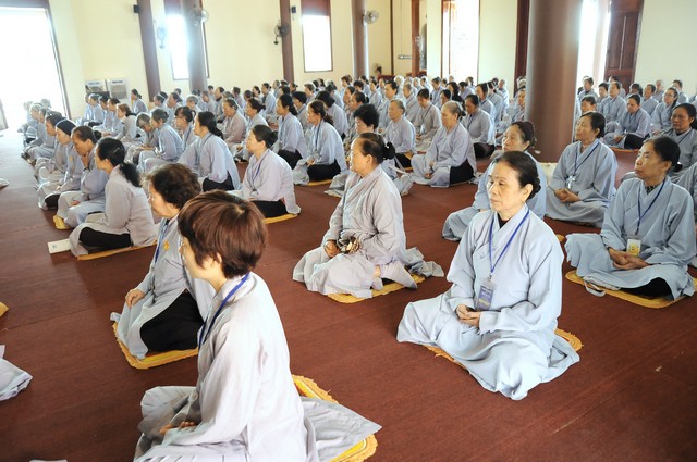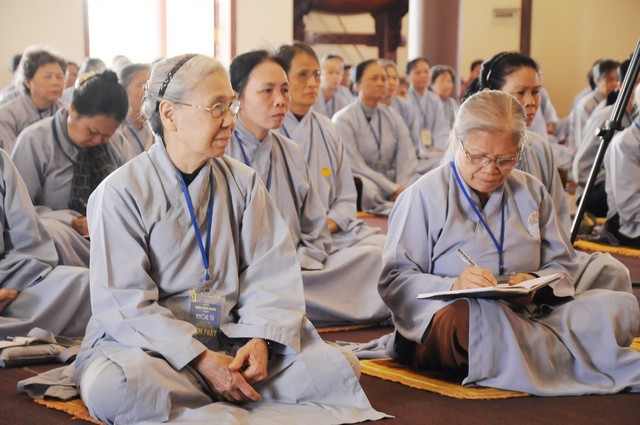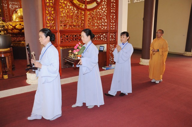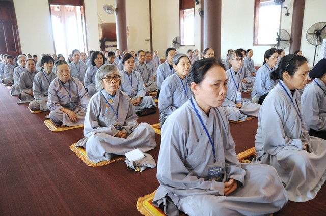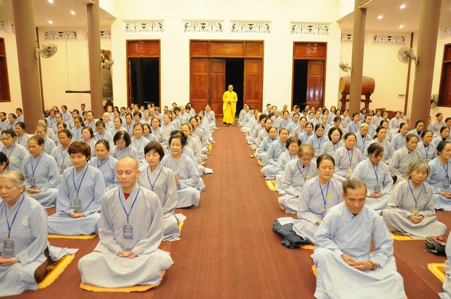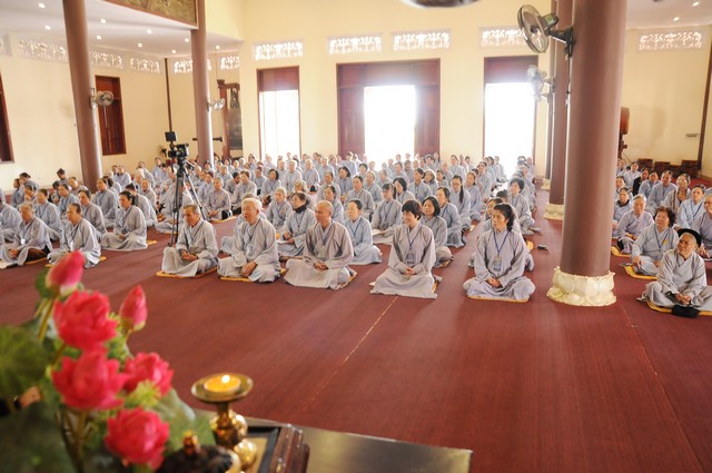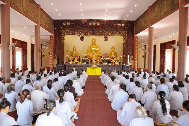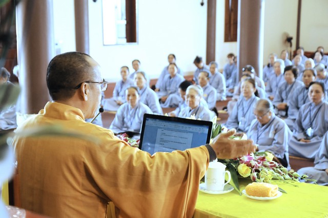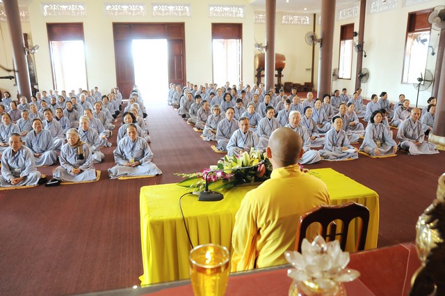 Trong năm 2017 Đinh Dậu này, quý Phật tử tham dự khóa tu 3 ngày tiếp tục được học hỏi giáo lý trong chương trình “ BƯỚC ĐẦU HỌC PHẬT” do Thượng tọa Thích Viên Trí chủ giảng. Với 3 bài giảng về “Ý Nghĩa Của Việc Cầu Nguyện”, “Tham Ái”, “Chấp Thủ” Thượng tọa giảng sư đã giúp các hành giả tu tập hiểu rỏ hơn về ý nghĩa của việc cầu nguyện và cách thực hành thiết thực nhất. Trong đó Cầu là mong ước của chúng ta, còn Nguyện là phải thực hành để đạt được ước nguyện đó. Tiếp đó, với chủ đề “Tham Ái” “Chấp Thủ” Thượng tọa đã phân tích và giúp mọi người thấy được căn nguyên của khổ đau. Chính bởi Tham Ái và Chấp Thủ nên con người phải chịu Sầu, Bi, Khổ, Ưu, Não từ đó trôi lăn trong sáu nẻo luân hồi. Cuối cùng Thầy khuyên mọi người về đây tham dự khóa tu, ngoài việc thực hành thời khóa tu tập, tụng kinh ngồi thiền, thính pháp thì nên quán xét thân tâm, chánh niệm trong từng lời nói, suy nghĩ và việc làm để đoạn trừ Tham, Sân, Si từ đó mới có được an lạc, hạnh phúc.