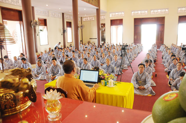 Những ngày tiếp theo, đại chúng đã được Thượng tọa Thích Viên Trí – Phó ban Giáo Dục Tăng Ni T.Ư GHPGVN, Phó viện trưởng Học Viện Phật Giáo Việt Nam tại TP. HCM chia sẻ Phật pháp qua 2 đề tài “ Tứ Vô Lượng Tâm” và “Quy Luật Nhân Quả”. Qua đó mỗi hành giả tu tập khi thực hành các pháp Từ – Bi – Hỷ – Xả cần nắm vững tinh thần và ý nghĩa đích thực của lời Phật dạy, áp dụng vào thực tế trong cuộc sống hằng ngày qua mỗi lời nói hành động của bản thân đối với gia đình và xã hội. Để có được an lạc hành phúc thật sự khi thực hành các pháp ấy cần phải nắm rỏ nguyên tắc và dựa trên nền tàng của Nhân Quả.