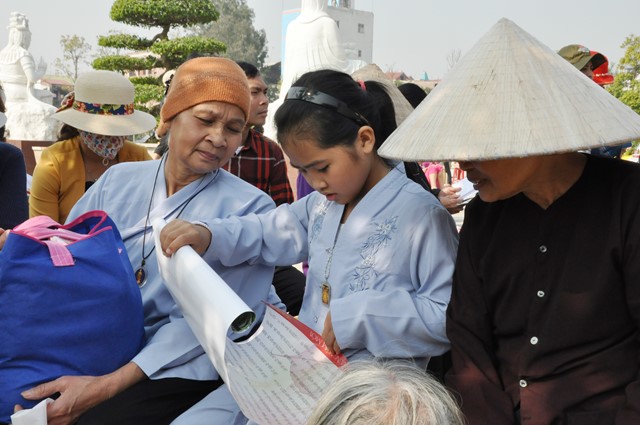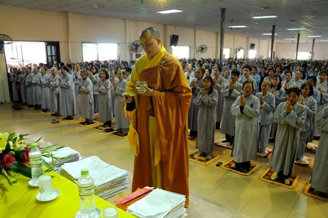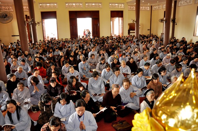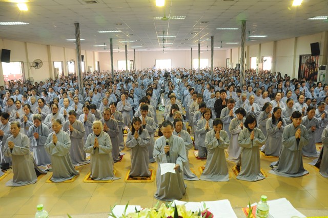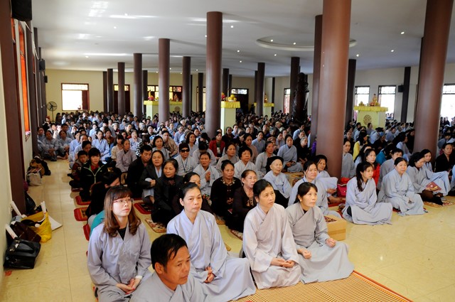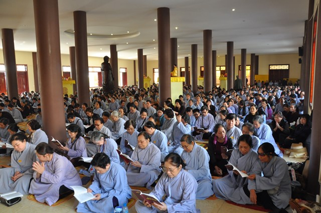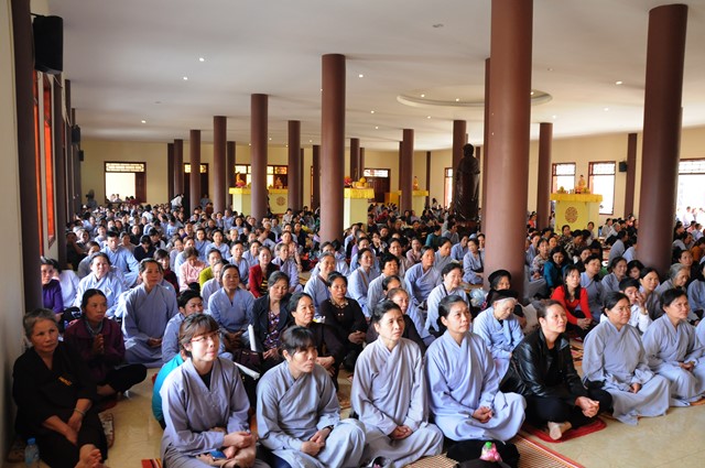Chính vì vậy, Thầy khuyên mọi người nên áp dụng lời Phật dạy vào chính cuộc sống của bản thân và gia đình, cụ thể hơn là bằng cách giữ gìn và thực hành Năm Giới của người tại gia. Đây là phương pháp căn bản nhất để đem lại lợi ích, an lạc và hạnh phúc cho mọi người. Sau những lời dặn dò và chúc phúc đầu xuân của Thầy trụ trì đại chúng bước vào khóa lễ tụng kinh cầu an đầu năm trong niềm hoan hỷ của mọi người.