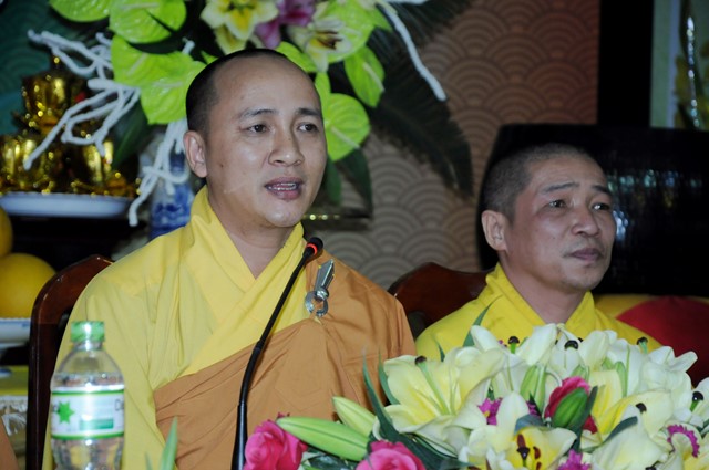 Sau khi cung nghinh chư tôn đức quang lâm là phần chúc Tết đầu năm của đại diện quý Phật tử. Bằng tất cả tấm lòng và sự tôn kính, đại chúng đồng ngưỡng nguyện hồng ân Tam Bảo gia hộ cho quý Thầy thân tâm an lạc, đạo tâm kiên cố, đạo quả viên thành để dìu dắt chúng sanh trên bước đường tu học. Đáp lại tình cảm đó, đại đức Thích Tâm Quán đã có đôi lời chúc phúc và dặn dò đầu năm đến quý Phật tử.