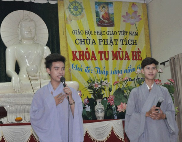 Tại lễ khai mạc khóa tu mùa hè “Thắp sáng niềm tin” ,các Phật tử lớp tài năng chùa Phật tích đã gửi đến khóa tu các ca khúc trữ tình của miền quê Quan Họ ,đặc biệt Phật tử Tiến bình và Minh Quang đã hát tặng và hướng dẫn các em cùng học hát trong không khí hoan hỉ và vui tươi