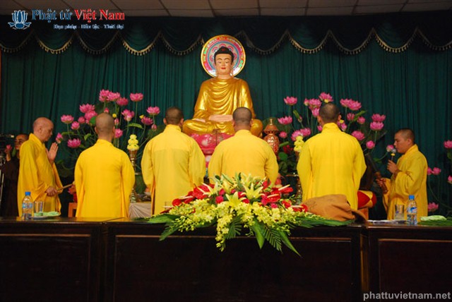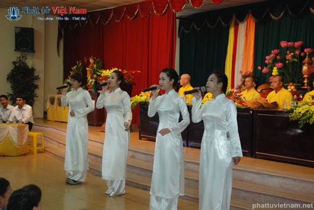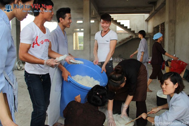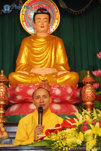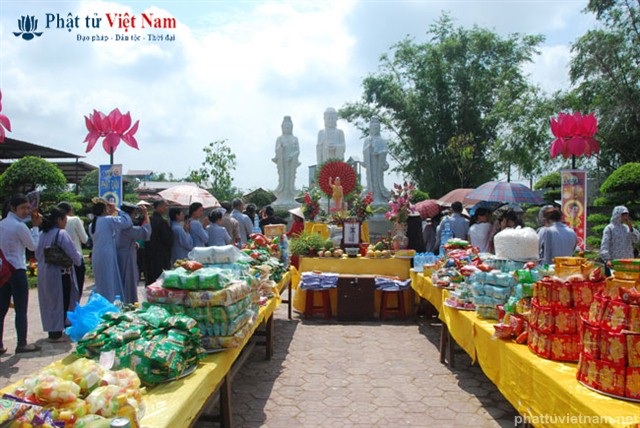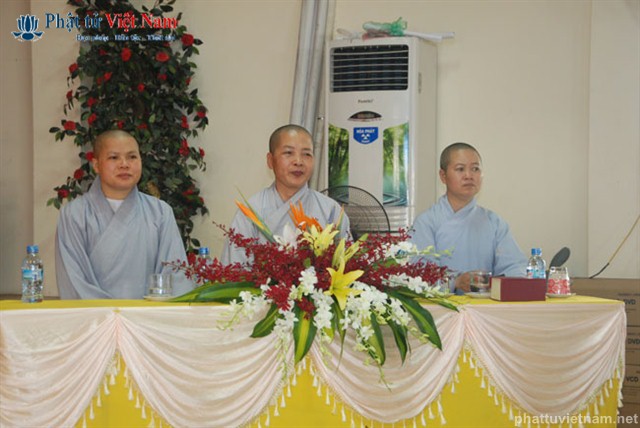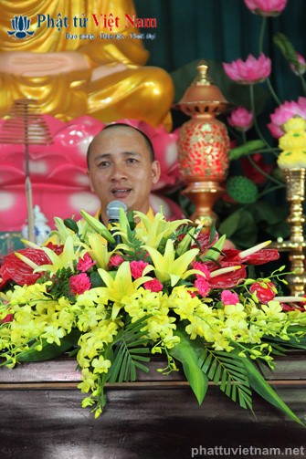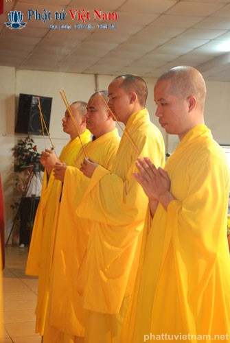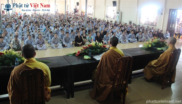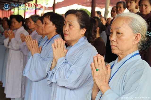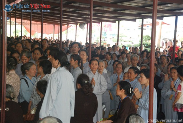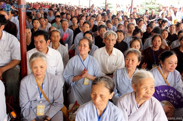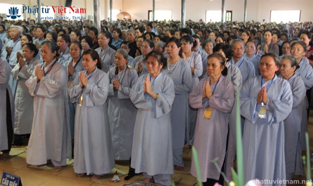 Tiếp đó vào buổi chiều, đúng 13 giờ 30, quý Phật tử về dự lễ đã được quý Thầy làm lễ quy y Tam Bảo thọ trì Tam quy ngũ giới.
