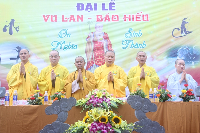 Thay mặt chư tôn đức chứng minh Đại đức Thích Giới Thanh – Ủy viên BTS GHPGVN tỉnh Bắc Ninh đã có lời đạo từ tới đại chúng. Thầy cho biết Mùa Vu Lan-Báo Hiếu lại trở về. Trong mỗi chúng ta, có người còn đủ mẹ cha, nhưng có người không có được diễm phúc đó. Nếu trên ngực ta được cài lên đóa hoa hồng thắm thì đó là một may mắn lớn cho chúng ta, vì ta biết rằng ta còn cha còn mẹ trên đời để phụng dưỡng, để thương yêu, để chia sẻ. Nhưng nếu không may đóa hoa trắng cài lên ngực ta thì chúng ta cũng đừng vì thế mà sầu bi than khóc. Chúng ta biết, trong hình hài của chúng ta luôn có dòng máu của cha mẹ ta, có những yêu thương của mẹ cha được gieo trồng vào trong ấy. Nếu ta biết chăm sóc, nuôi dưỡng đời sống của mình cho ngày một hướng thượng, cho ngày một thăng hoa; biết giáo dưỡng con cháu và biết gìn giữ truyền thống tốt đẹp của gia đình tổ tiên thì lúc nào cha mẹ cũng ở bên cạnh ta, và lúc nào chúng ta cũng đang báo hiếu cha mẹ. Với tinh thần đó thì dù cha mẹ đã quá vãng hay còn sanh tiền, chúng ta cũng đều báo hiếu được; với tinh thần đó, lòng hiếu của chúng ta được xem là trọn vẹn, đầy đủ ý nghĩa nhất.