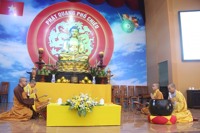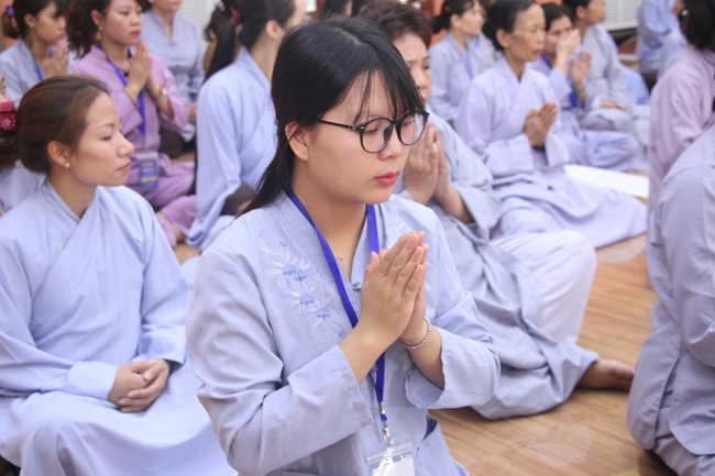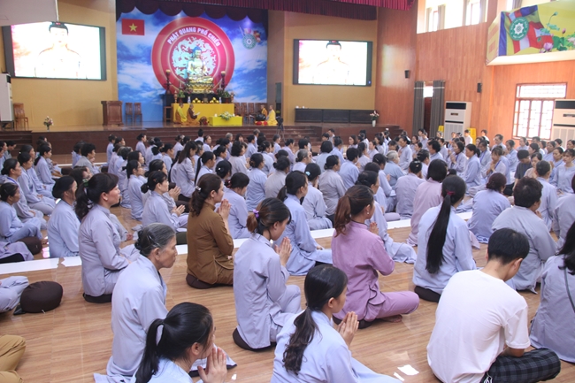 Mở đầu khoá tu đại chúng niệm danh hiệu “Đức Bồ Tát Quán Thế Âm” trầm hùng với mong muốn đem lại nguồn năng lượng an lạc, tiếp xúc được sự lắng nghe những âm thanh của cuộc đời trong mỗi thiền sinh để có cơ hội mang lại sự lắng nghe sâu sắc đối với những người thân yêu trong gia đình.