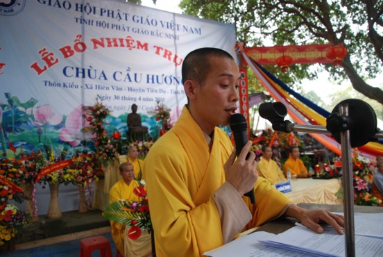 TT Thích Thanh Tuân – Ủy viên thường trực BTS Phật giáo tỉnh Bắc Ninh tuyên đọc quyết định bổ nhiệm trụ trì.