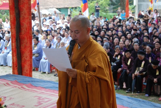 ĐĐ Thích Thiện Hải dâng lời cảm niệm tri ân công đức tới chư tôn đức chứng minh, Đại Đức đã bày tỏ lòng biết ơn đến các cấp chính quyền đã tạo mọi điều kiện giúp đỡ về thủ tục hành chính, cũng như cho phép tổ chức lễ bổ nhiệm trụ trì chùa ngày hôm nay, thành tâm cảm niệm công đức của toàn thể quý Phật tử đã ủng hộ từ tinh thần đến vật chất trong trong thời gian ngày qua.Đại Đức phát nguyện giữ vững đạo tâm, cùng nhân dân và Phật tử địa phương xây dựng và phát triển nơi đây thành một chốn thiền môn trang nghiêm thanh tịnh, tu học đúng chánh pháp.