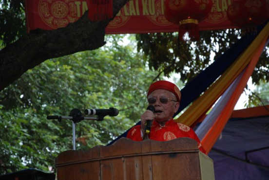 Ông Phạm Đăng Lộ – Thay mặt người cao tuổi của Thôn dâng lời cảm niệm tới Đại đức Tân trụ trì.
