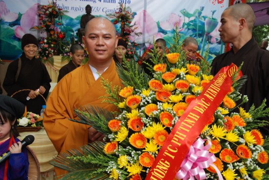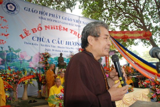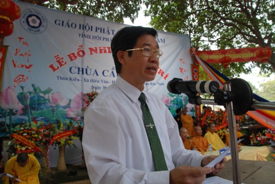Ông Đinh Xuân Vịnh – Trưởng ban tôn giáo tỉnh thay mặt chính quyền địa phương phát biểu chúc mừng, ông tin tưởng và mong muốn Đại đức tân trụ thực hiện tốt công tác quản ký cơ sở vật chất nhà chùa, hướng dẫn Phật tử trong Thôn tu tập công đức và luôn thực hiện tốt các chính sách phát luật của Đảng và nhà nước về Tôn giáo, để góp phần cùng lãnh đạo xây dựng địa phương ngày càng giàu đẹp.