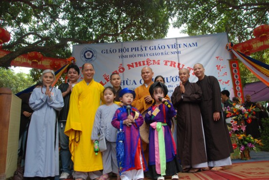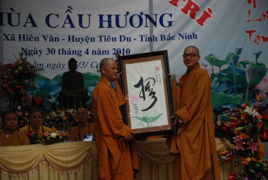 TT Thích Thanh Phụng – Ủy viên HĐTS TW GHPGVN – Phó thường trực BTS PG tỉnh Bắc Ninh trao quyết định bổ nhiệm trụ trì và tặng hoa chúc mừng.