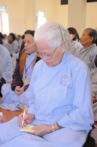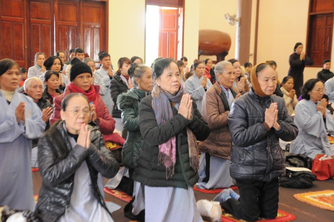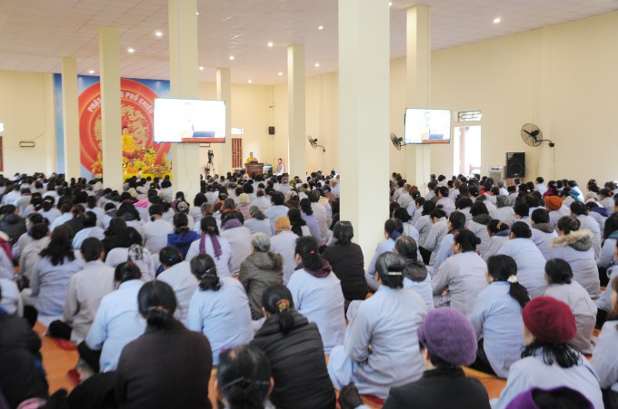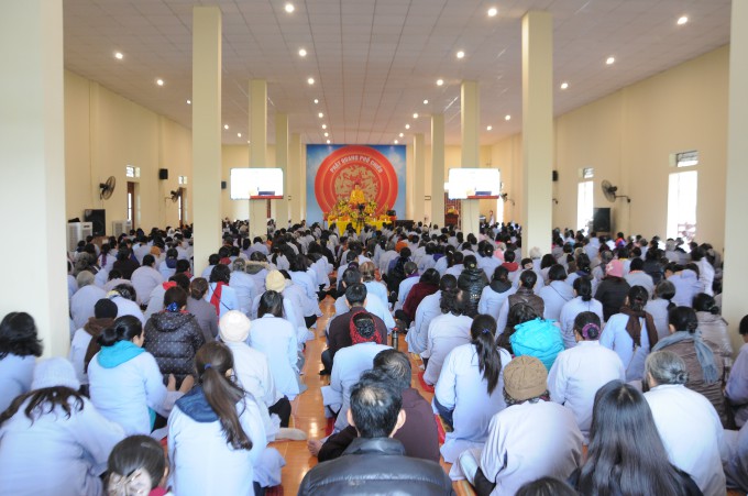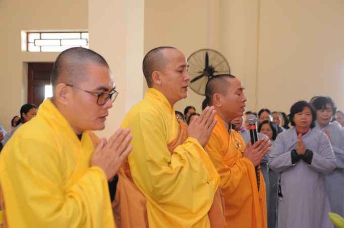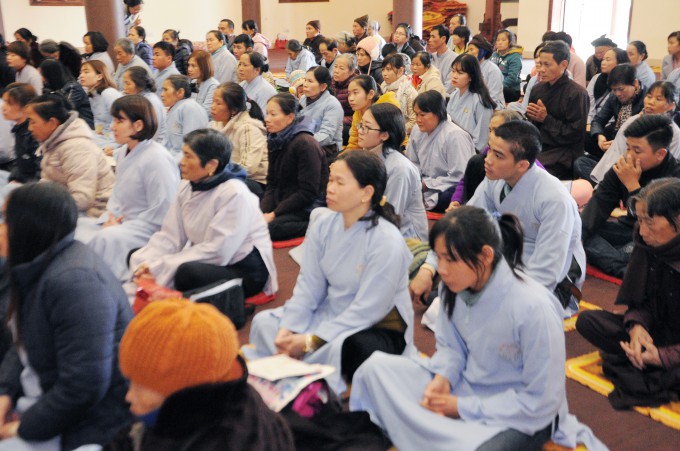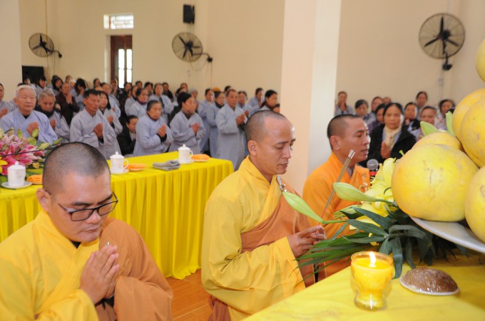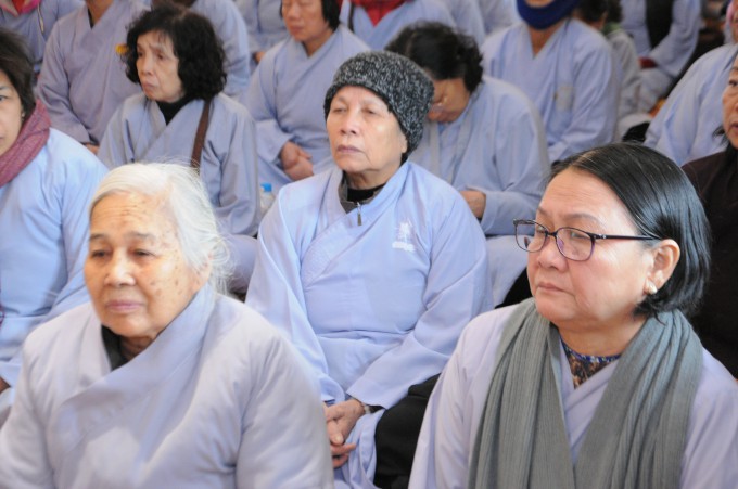Chiều cùng ngày, đại đức Thích Tâm Quán đã cử hành khóa lễ Quy y Tam Bảo cho quý Thiện nam Tín nữ phát tâm thọ trì Tam Quy Ngũ Giới tại chánh điện. Bên cạnh đó, đại chúng còn đến với thời pháp thoại do đại đức Thích Đạo Quang thuyết giảng tại giảng đường.