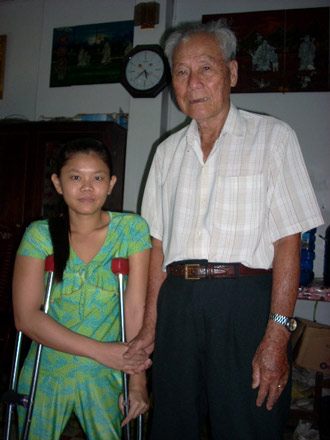 Việc đi lại hiện tại Ly phải nhờ vào đôi nạng song nụ cười luôn thường trực trên môi cô gái 24 tuổi này. Ly tâm sự: “Trước kia thì chỉ có thể bò quanh quẩn trong nhà nhưng bây giờ có thể đi lại được là một phép lạ, tất cả là nhờ Ông”.