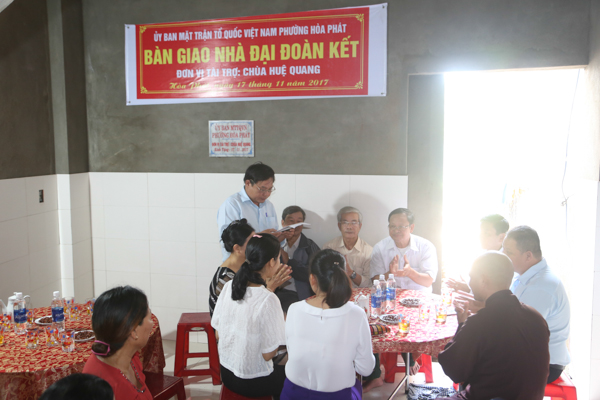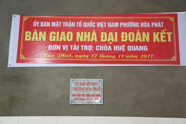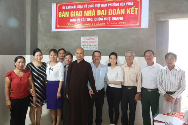 Mặc dù ngôi chùa Huệ Quang đang trong quá trình xây dựng chưa hoàn thiện, tuy nhiên với tinh thần “Phụng sự chúng sanh là thiết thực cúng dường Chư Phật”, hưởng ứng cuộc vận động “Vì người nghèo” do UBMTTQVN quận Cẩm Lệ phát động, ĐĐ. Thích Thông Huệ đã vận động đạo hữu Phật tử chung tay hỗ trợ ngôi nhà Đại đoàn kết cho hộ bà Ngô Thị Thanh Thọ (tổ 21, phường Hòa Phát, quận Cẩm Lệ, Tp Đà Nẵng) với số tiền 60 triệu đồng nhằm giúp gia đình chị Thọ có nơi ở an toàn ổn định để phấn đấu vươn lên trong cuộc sống.