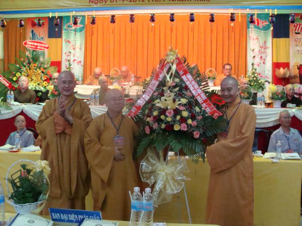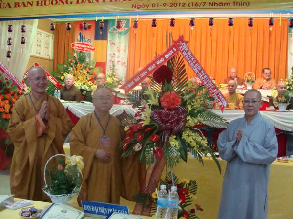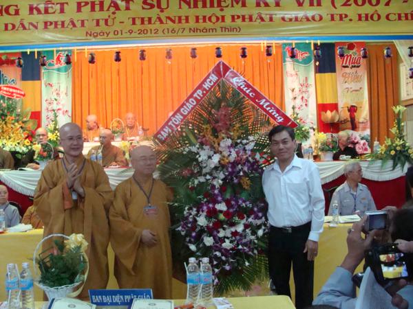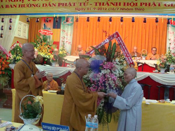 Tại Hội nghị các tổ chức ban ngành Phật giáo Tp.HCM đã tặng những lẵng hoa tươi thắm đến BDPTPT TP.HCM.
