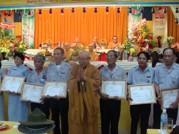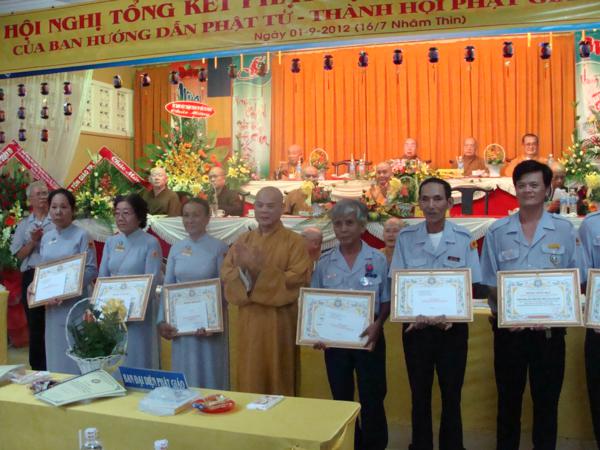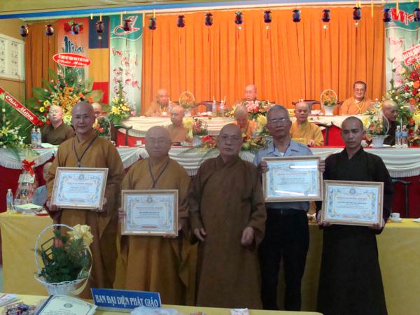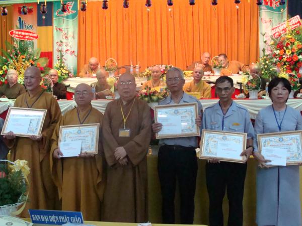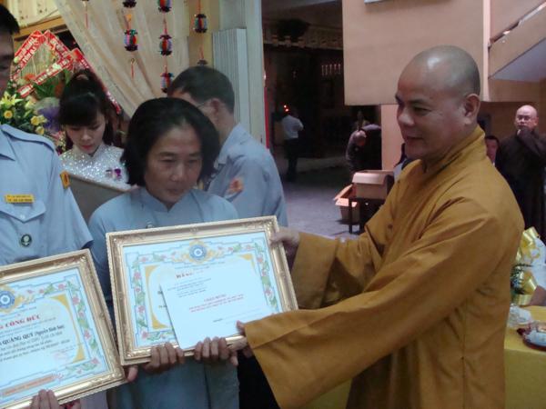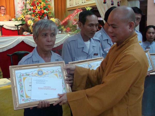 Trong buổi lễ HT. Thích Nhật Quang – Phó Ban kiêm Chánh thư ký Ban trị sự THPG TP.HCM đã tuyên đọc quyết định tặng bằng tuyên dương công đức của THPG TP.HCM cho 04 tập thể và 06 cá nhân và bằng công đức cho 17 tập thể và 32 cá nhân đã đạt thành tích xuất sắc trong công tác Phật sự và từ thiện xã hội trong nhiệm kỳ qua.