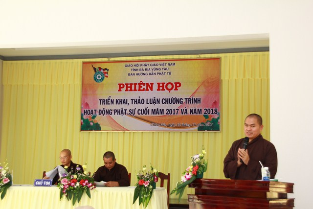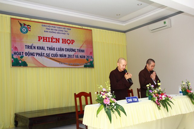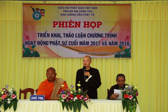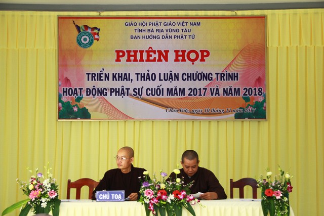 Chủ toạ điều hành phiên họp có Đại đức Thích Chiếu Hiền Trưởng Ban HDPT, đại đức Thích Minh Thuận, phó trưởng Ban thường trực, Thượng toạ Quách Thành Sattha Phó trưởng ban Ban HDPT tỉnh Bà Rịa – Vũng Tàu, đại đức Thích Hạnh Danh Phó trưởng ban kiêm Chánh thư ký dẫn dắt chương cuộc họp.