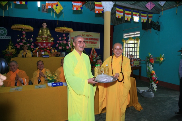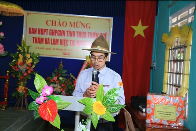 Thay mặt Ban Trị sự, Ban HDPT GHPGVN huyện A Lưới, chúng con thành kính đảnh lễ niệm ân: Hòa thượng Trưởng Ban và chư Tôn đức Ban HDPT GHPGVN tỉnh Thừa Thiên Huế; Chư Tôn đức Tăng, Ni thường trực Ban Trị sự, các ban ngành trực thuộc GHPGVN huyện A Lưới; Ban HDPT chân thành cảm tạ quý Đạo hữu Cư sĩ Phật tử trong phái đoàn, xin ghi nhận và tán dương công đức quý Đạo hữu Phật tử gần xa đã về tham dự và giúp đỡ nhiều mặt buổi lễ.