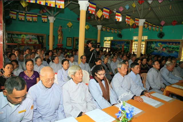 Thay mặt Ban Trị sự và đồng bào Phật tử, chúng con thành tâm kính chúc chư Tôn đức pháp thể khinh an, chúng sanh dị độ. Kính chúc quý Đạo hữu Phật tử thân tâm thường lạc, thành tựu như sở nguyện. Chúc chuyến thăm viếng của chư Tôn đức Ban HDPT GHPGVN tỉnh Thừa Thiên Huế thành công viên mãn”.