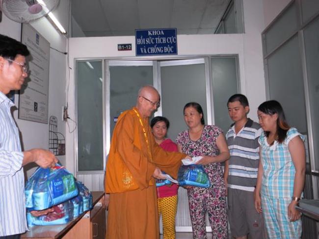 Theo đó, Ngày 05/5/2016 (Nhằm ngày 10-4 âl), để thể hiện lòng từ bi cứu khổ ban vui theo lời Phật dạy, và tinh thần tương thân tương trợ của dân tộc. HT Thích Chơn Không – Quyền Trưởng ban Hướng dẫn Phật tử Thành phố, Trụ trì chùa Thiên Tôn hướng dẫn đoàn đến thăm và tặng 150 phần quà cho bệnh nhân nghèo tại bệnh viện Nguyễn Tri Phương và tặng 40 suất quà cho bà con lao động nghèo ở địa phương.