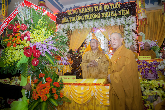 Tại buổi lễ, Chư tôn đức giáo phẩm HĐCM, HĐTS, Các ban viện T.Ư Giáo hội, BTS các tỉnh thành và lãnh đạo các cấp Ban, ngành, chính quyền địa phương đã gởi lời chúc mừng khánh tuế đến HT.Thích Như Niệm tròn 80 tuổi đời, 60 tuổi đạo.