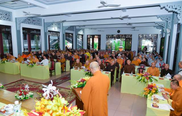 Báo cáo tổng kết công tác Phật sự của nhiệm kỳ VII ( 2012 – 2017 và đề ra phương hướng hoạt động của Ban trong nhiệm kỳ (2017 – 2022) do TT. Thích Huệ Thông, Phó Ban kiêm Chánh Thư ký trình bày.