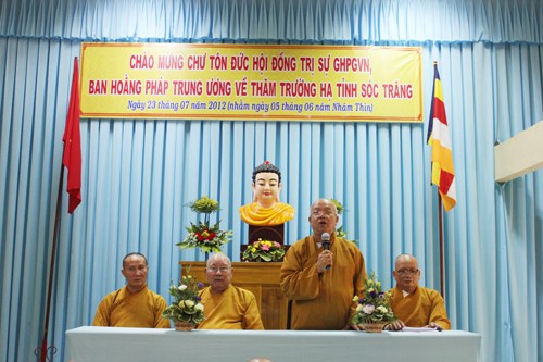 Nhân sự kiện Ban Hoằng pháp Trung ương GHPGVN về thăm viếng trường Hạ tỉnh Sóc Trăng, Ban Thường trực Ban Trị sự, Ban Giám hạ hai điểm Tăng Ni hân hoan chào đón quý ngài một cách trọng thể, luôn trân quý tấm chân tình của chư tôn đức đã dành cho Phật giáo Sóc Trăng và mong mỏi chư tôn đức quan lâm thường xuyên để làm cho nguồn sống đạo của Sóc Trăng ngày càng vững bước.
