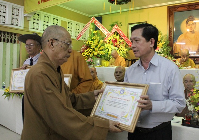 Buổi lễ có sự chứng minh của HT.Thích Thiện Tánh, Phó chủ tịch HĐTS, Phó Trưởng Ban trị sư GHPGVN TP.HCM, HT. Thích Thanh Hùng – Phó trưởng ban TT Ban HDPT. TW, cùng chư tôn Ban thường trực GHPGVN TP.HCM : HT.Thích Tịnh Hạnh, HT. Thích Như Tín, HT. Thích Thiện Đức và chư tôn đức các Ban ngành, Ban đại diện Phật giáo 24 quận huyện.