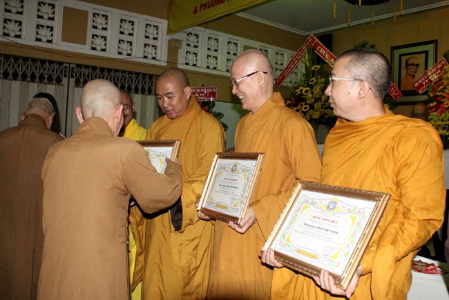 Trong dịp này, BTS GHPGVN TP.HCM quyết định khen thưởng đối với các cá nhân tập thể có nhiều thành tích xuất sắc trong các công tác Phật sự năm 2015.