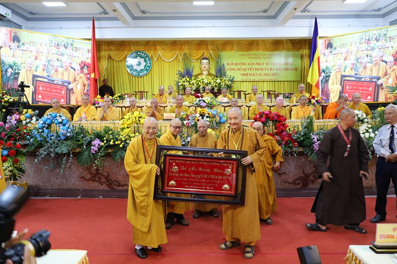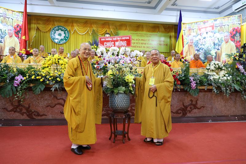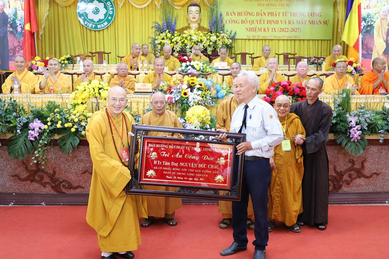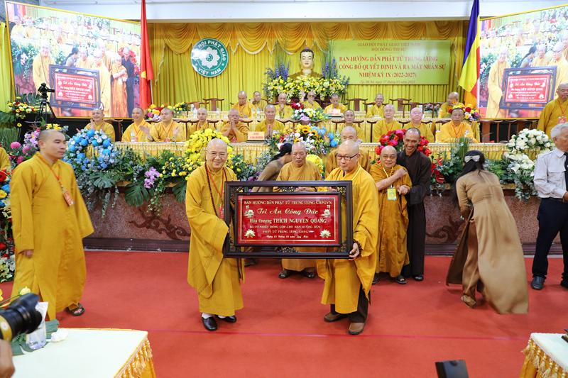 Dịp này, Hòa thượng Thích Khế Chơn cũng tặng khánh vàng để tri ân công đức chư Tôn đức ngưng công tác trong Ban Hướng dẫn Phật tử nhiệm kỳ IX. Tiếp theo, Thượng tọa Thích Phước Nguyên trình thảo phương hướng hoạt động Phật sự nhiệm kỳ IX gồm 16 mục tiêu.