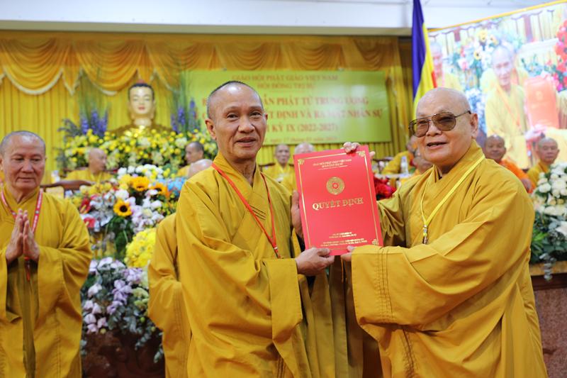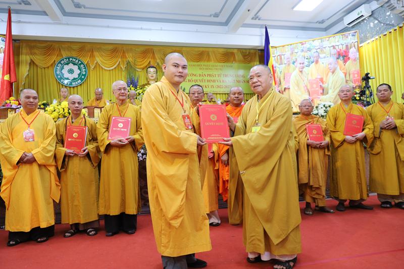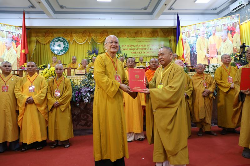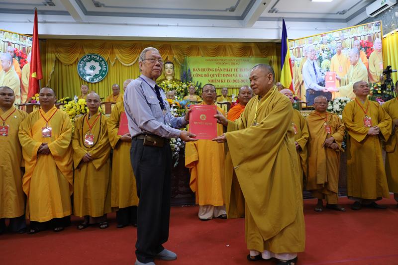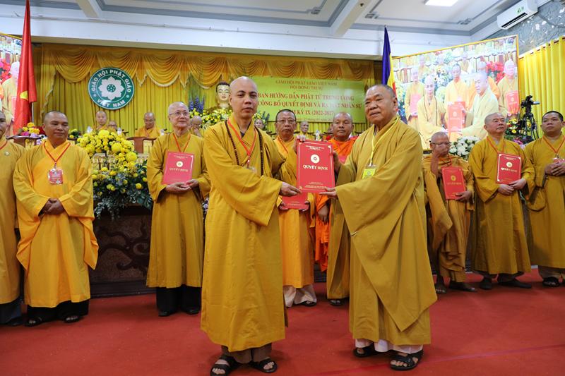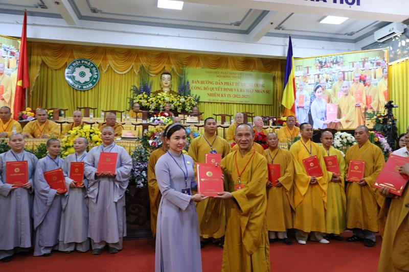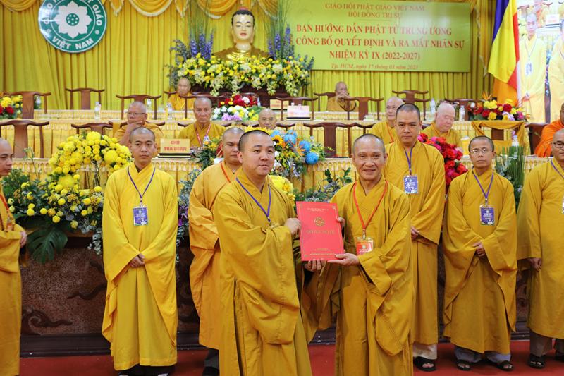 Tiếp đó, Thượng tọa Thích Phước Nguyên, Phó Tổng Thư ký kiêm Chánh Văn phòng 2 Trung ương, thông qua quyết định chuẩn y thành phần nhân sự Ban Hướng dẫn Phật tử Trung ương nhiệm kỳ IX (2022 – 2027).