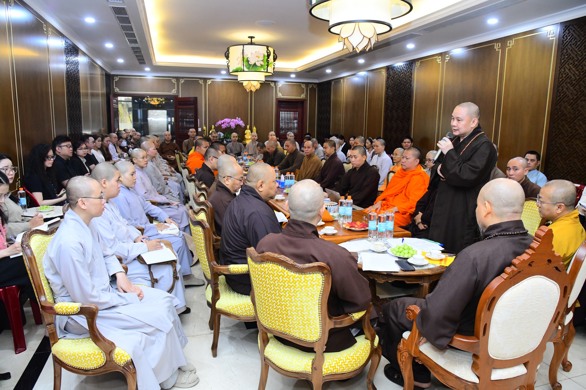 Tham dự phiên họp có HT. Thích Thanh Phong – Phó Chủ tịch HĐTS, Phó Chủ tịch Thường trực Uỷ ban Tổ chức Đại lễ Vesak 2025 tại Việt Nam; TT. Thích Nhật Từ – Uỷ viên Thường trực HĐTS, Phó Chủ tịch, Phó Tổng Thư ký Uỷ ban Tổ chức Đại lễ Vesak 2025 tại Việt Nam; TT. Thích Quang Thạnh – Phó Tổng Thư ký Uỷ ban Tổ chức Đại lễ Vesak 2025; TT. Thích Giác Hiệp – Uỷ viên Uỷ ban Tổ chức Đại lễ Vesak 2025.