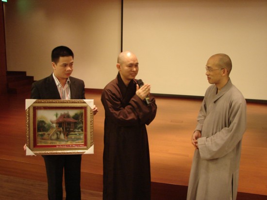 Đi cùng đoàn có Đại đức Thích Tâm Hải – Phó thư ký Tòa soạn báo Giác Ngộ, đại diện của Công ty Cổ phân viễn thông – truyền thông An Viên.