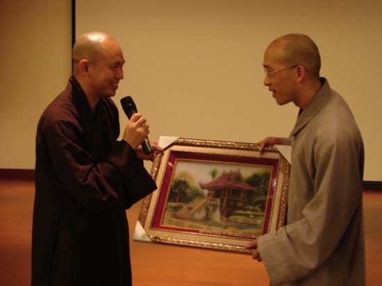 Đại diện Pháp Cổ Sơn tặng quà lưu niệm cho đoàn