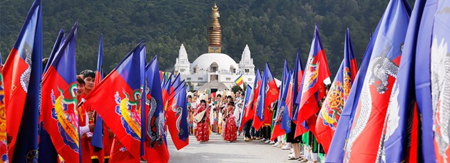 Phật tử quốc tế và các Phật tử Việt Nam đã từng thăm viếng Đại Bảo tháp Boudhanath ở trung tâm thủ đô Katmandu – Nepal dạt dào đạo niệm trước một công trình linh thiêng thì bây giờ, ngay tại đất nước Việt Nam cũng mọc lên một đại Bảo Tháp nguy nga tráng lệ, tuy không rộng lớn như bảo tháp Boudhanath nhưng mỹ thuật kiến trúc hiện đại hơn, giầu bản sắc cổ kính của lịch sử Phật giáo Kim Cương Thừa. Đức Pháp Vương Gyalwang đã đặt tượng Phật của Bảo Tháp quay về phương Nam để năng lượng gia trì của Chư Phật được ban trải tới khắp dương gian, từ thành thị tới nông thôn, từ núi cao đến hải đảo Việt Nam, không phân chia vùng miền và biên giới. Phật tử và du khách tâm linh dù tới từ hướng nào cũng thấy ngay cặp mắt và huệ nhãn thứ ba của Chư Phật từ bi, trí tuệ, chan chứa tính nhân văn sâu xa của bậc toàn giác như truyền dọi hào quang niềm phúc lạc an lành cho nhân gian.