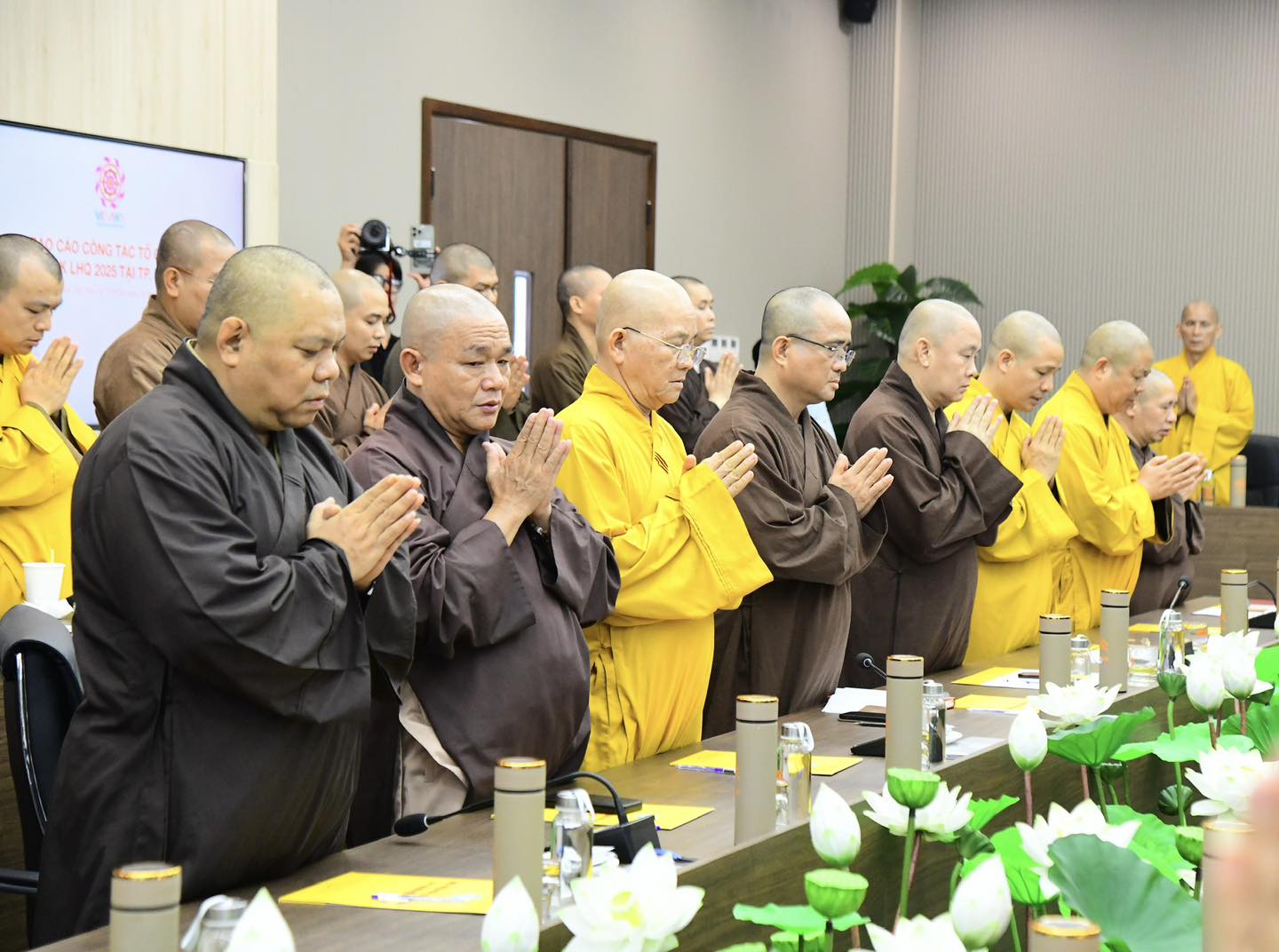 Cuộc họp do Trưởng lão Hòa thượng Thích Thiện Nhơn – Phó Pháp chủ Hội đồng Chứng minh, Chủ tịch Hội đồng Trị sự kiêm Chủ tịch Ủy ban Tổ chức Quốc gia Đại lễ Vesak 2025 chủ trì. Cùng tham dự có các Trưởng lão Hòa thượng Thích Thiện Pháp, Thích Thanh Nhiễu – đồng Phó Chủ tịch Thường trực Hội đồng Trị sự; Hòa thượng Thích Gia Quang – Phó Chủ tịch Hội đồng Trị sự, Trưởng ban Thông tin – Truyền thông T.Ư; Thượng tọa Thích Đức Thiện – Phó Chủ tịch kiêm Tổng Thư ký Hội đồng Trị sự, kiêm Phó Chủ tịch – Tổng Thư ký Ủy ban Tổ chức Quốc gia; cùng các vị Phó Chủ tịch Hội đồng Trị sự như Hòa thượng Thích Thiện Tâm, Thích Thiện Thống và Thích Huệ Thông.