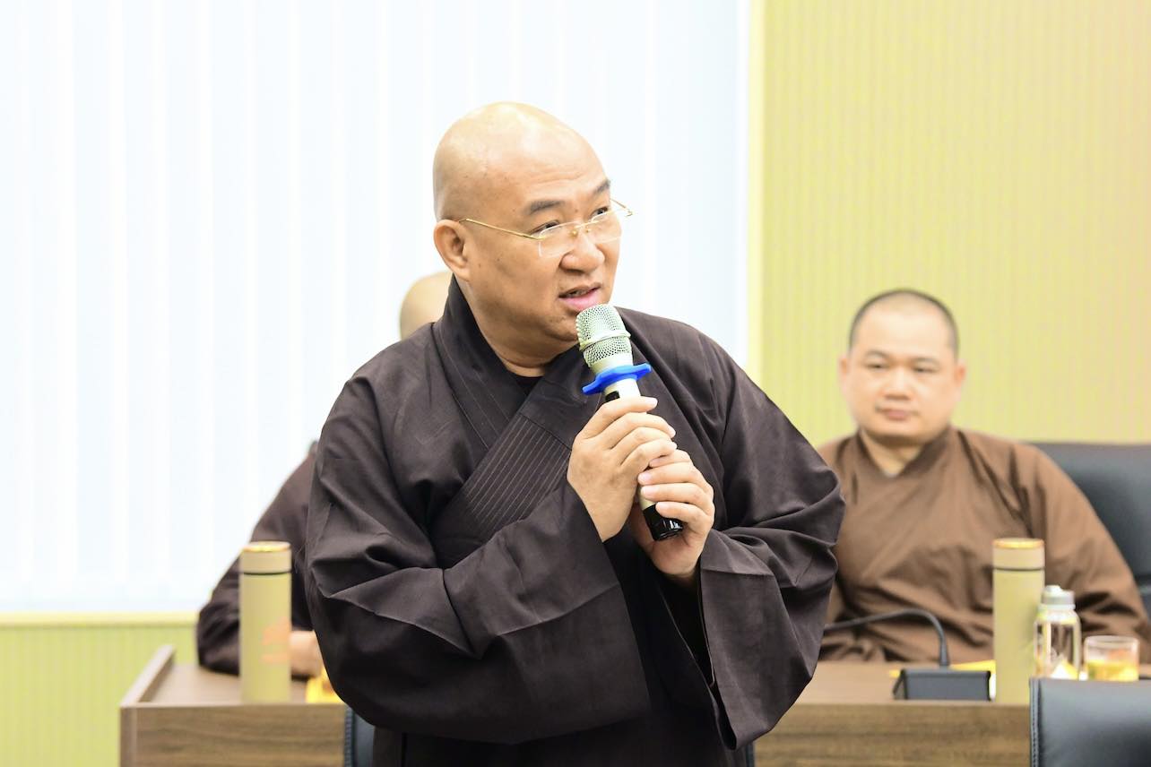 Thượng tọa Thích Đức Thiện cũng giải đáp nhiều thắc mắc liên quan đến truyền thông và báo chí, đồng thời cùng chư tôn đức thống nhất các phần việc về đảm bảo an ninh, lưu trú, di chuyển và tổ chức các hoạt động văn hóa, triển lãm trong khuôn khổ Đại lễ.