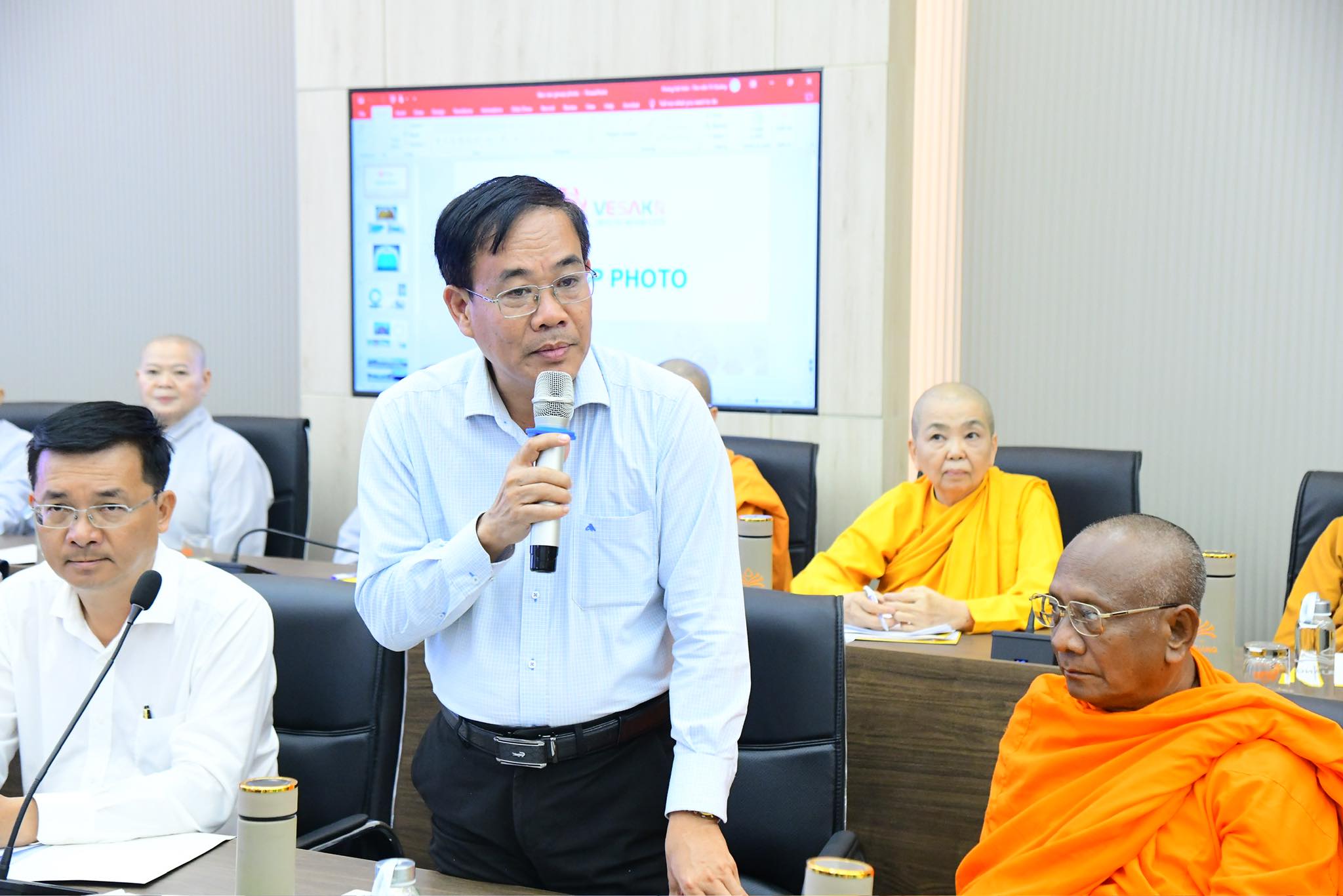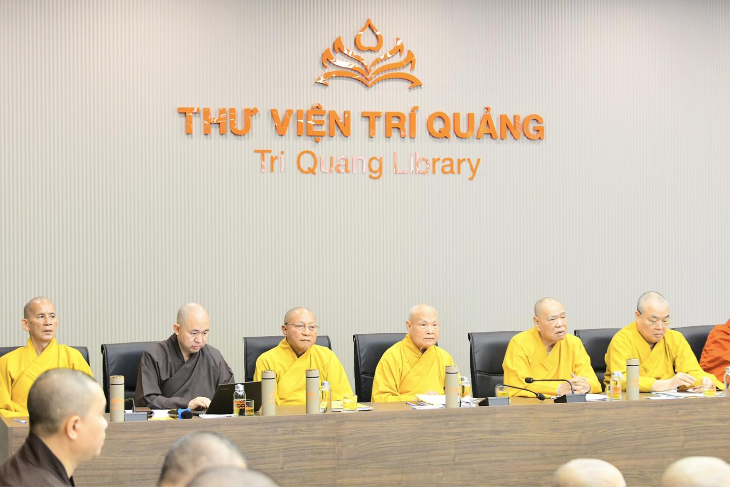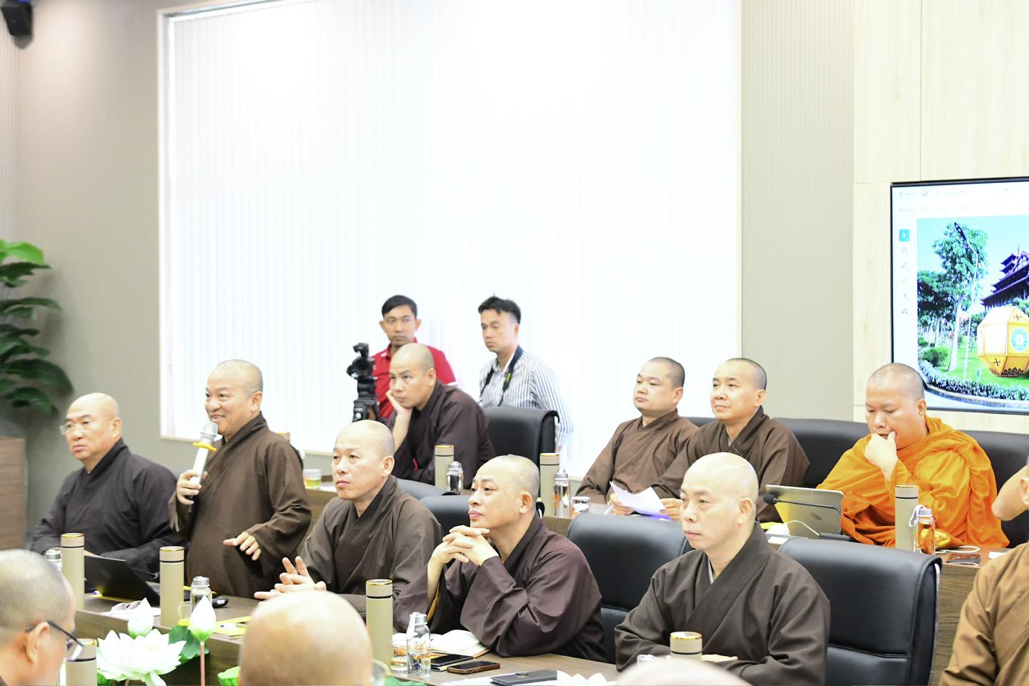 Trong phần báo cáo truyền thông, Hòa thượng Thích Gia Quang cho biết công tác phối hợp với các cơ quan báo chí đã được triển khai sớm. Trung tâm báo chí phục vụ Đại lễ sẽ khai trương vào ngày 2/5 tại Học viện, hỗ trợ cấp thẻ và tạo điều kiện tác nghiệp.