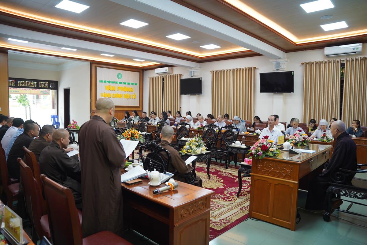 Tham dự phiên họp có Hòa Thượng Thích Khế Chơn – Phó Chủ tịch HĐTS GHPGVN, Trưởng Ban Trị sự kiêm Trưởng Ban Tăng sự GHPGVN tỉnh Thừa Thiên Huế; Đại Đức Thích Thiện Tuệ – Phó thư ký, Chánh VP Ban trị sự GHPGVN tỉnh Thừa Thiên Huế; ông Hoàng Việt Trung – Giám đốc Trung tâm Bảo tồn Di tích Cố đô Huế, Phó Trưởng Ban Thường trực Ban tổ chức Festival Huế 2024; Đại đức Thích Huệ Trọng – Phó Trưởng Ban Thường trực Ban Từ thiện Xã hội GHPGVN tỉnh TT Huế, Trưởng Ban Tổ chức Lễ hội Ẩm thực Chay – Festival Huế 2024 cùng quý chư Tôn đức Tăng ni trong Ban Tổ chức và Đại diện các khách sạn, Nhà hàng tham gia tài trợ Lễ hội.