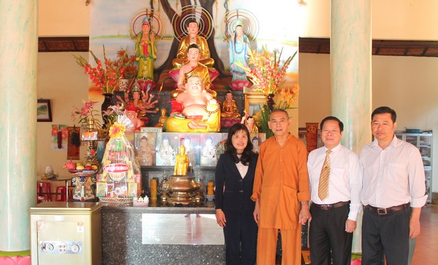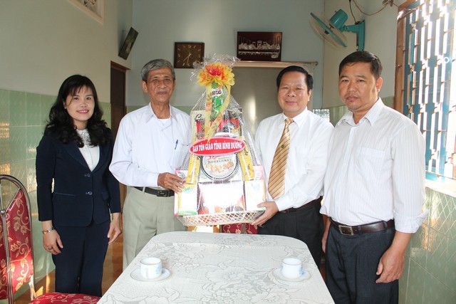 Dưới sự dẫn đầu do ông Trần Đức Thịnh (Phó Giám đốc Sở Nội vụ, Trưởng Ban Tôn giáo tỉnh) làm trưởng đoàn, phái đoàn BTG đã đến thăm thượng tọa Thích Huệ Trung, trụ trì chùa Di Đà (xã Bạch Đằng, thị xã Tân Uyên) là con liệt sĩ Huỳnh Văn Lũy – cố Bí thư Tỉnh ủy Thủ Biên và mục sư Nguyễn Văn Lân, quản nhiệm chi hội Tin lành Bạch Đằng (Hội thánh Tin lành Việt Nam miền Nam, thị xã Tân Uyên) là con liệt sĩ Nguyễn Văn Long.