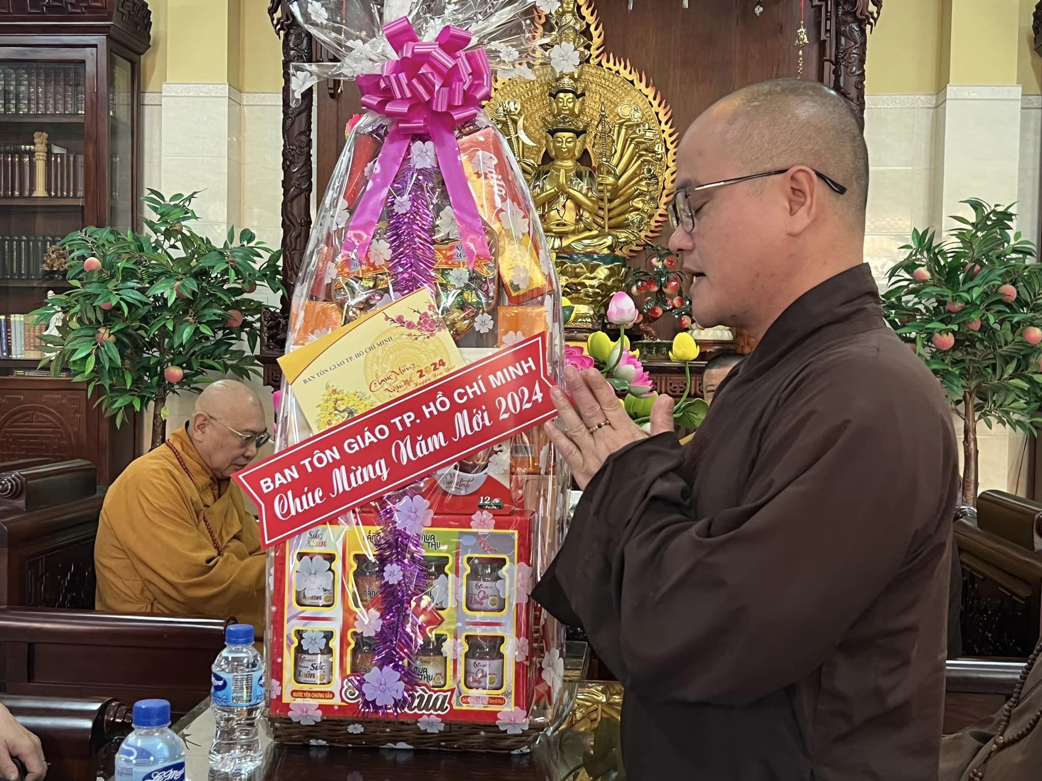 Thượng tọa chúc năm mới đến thành viên đoàn và các vị trong Ban Tôn giáo TP.HCM sức khỏe, vạn sự an lành và hoàn thành tốt mọi công tác được giao.
