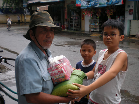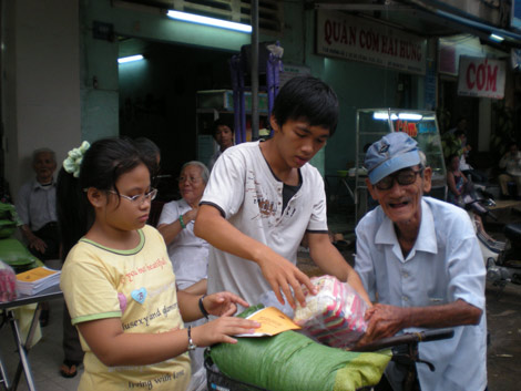 Anh Hòang nói rằng anh cùng những ngừơi trong xóm làm việc này đã ba năm nay rồi, mỗi năm hai lần vào dịp tết và Vu Lan. Trước đây mỗi phần quà là 10kg gạo và 10 gói mì gói. Năm nay do vật giá đắt đỏ nên rút xuống mỗi phần quà chỉ còn 5kg gạo.