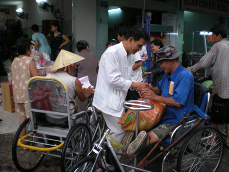 Để thực hiện buổi phát chẩn, anh Hòang cùng với Tuấn, một học sinh lớp 11, đã vận động các Phật tử trong xóm từ 1 tháng trước. Các Phật tử trong xóm không giàu, phần lớn là các gia đình buôn bán nhỏ, các bác công nhiên viên nghĩ hưu, công nhân viên, sinh viên và đặc biệt là các em học sinh cấp một, các em đã vui lòng moi heo đất của mình để cùng người lớn góp phần vào công cuộc từ thiện.