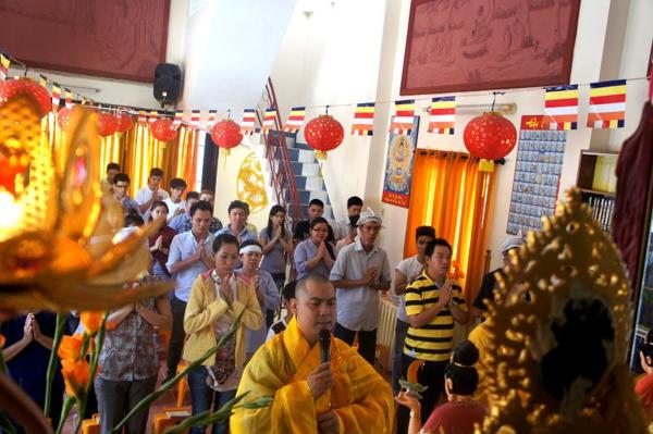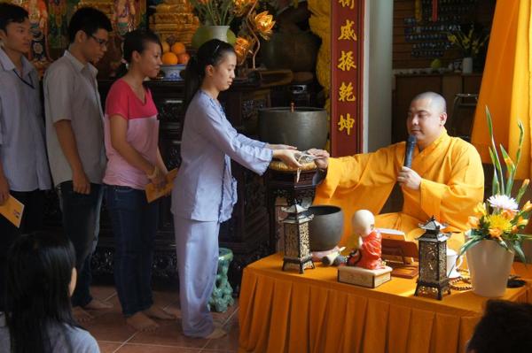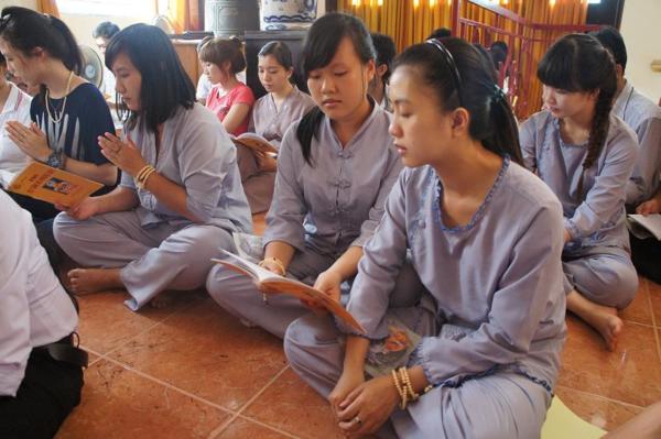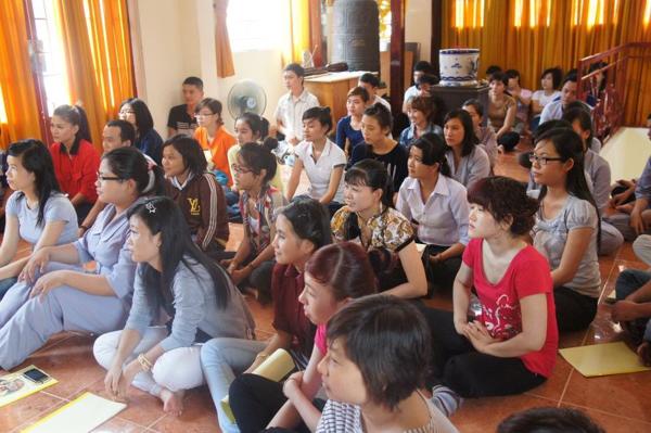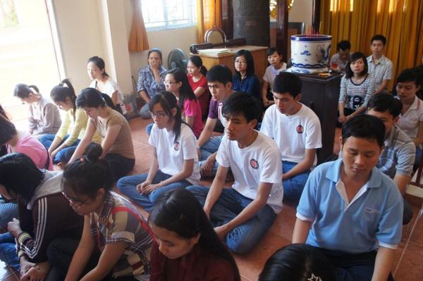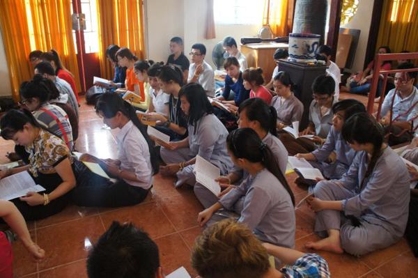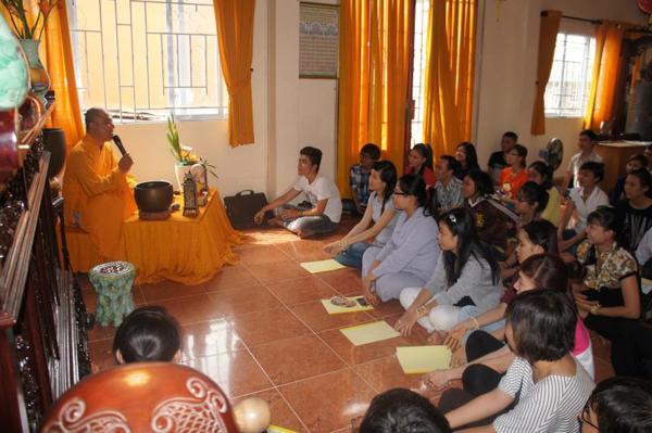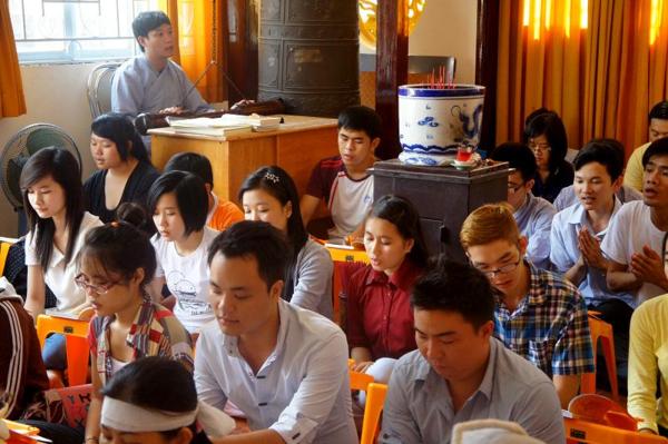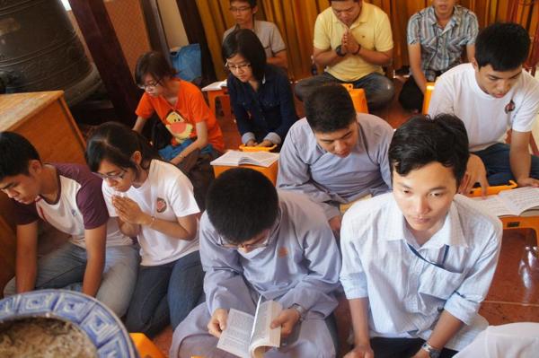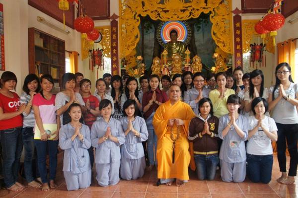 Hôm nay, ngày 15/07/2012, trong khuôn viên bản tự chật hẹp với sức chứa khoảng gần 100 người nơi chánh điện là chỗ hội tụ của các bạn trẻ sinh hoạt với những thời khóa : tụng kinh Vu lan – Báo hiếu, thực tập ăn cơm trong chánh niệm, lắng nghe pháp thoại với chủ đề “DUYÊN NỢ” do Đại đức Thích Lệ Minh – Trụ trì chùa Thiện Mỹ phụ trách.
