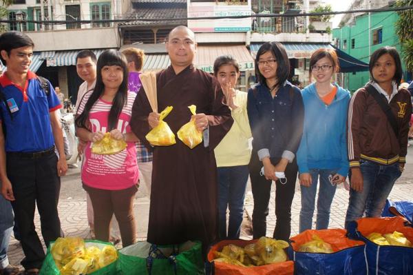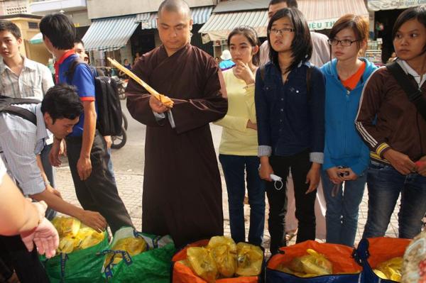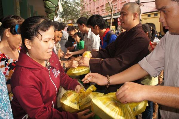 Kế tiếp, đại chúng tụng kinh Từ tâm – Phước đức để hồi hướng phúc lành cho các vị thí chủ phát tâm ủng hộ cho chương trình phát cơm từ thiện.